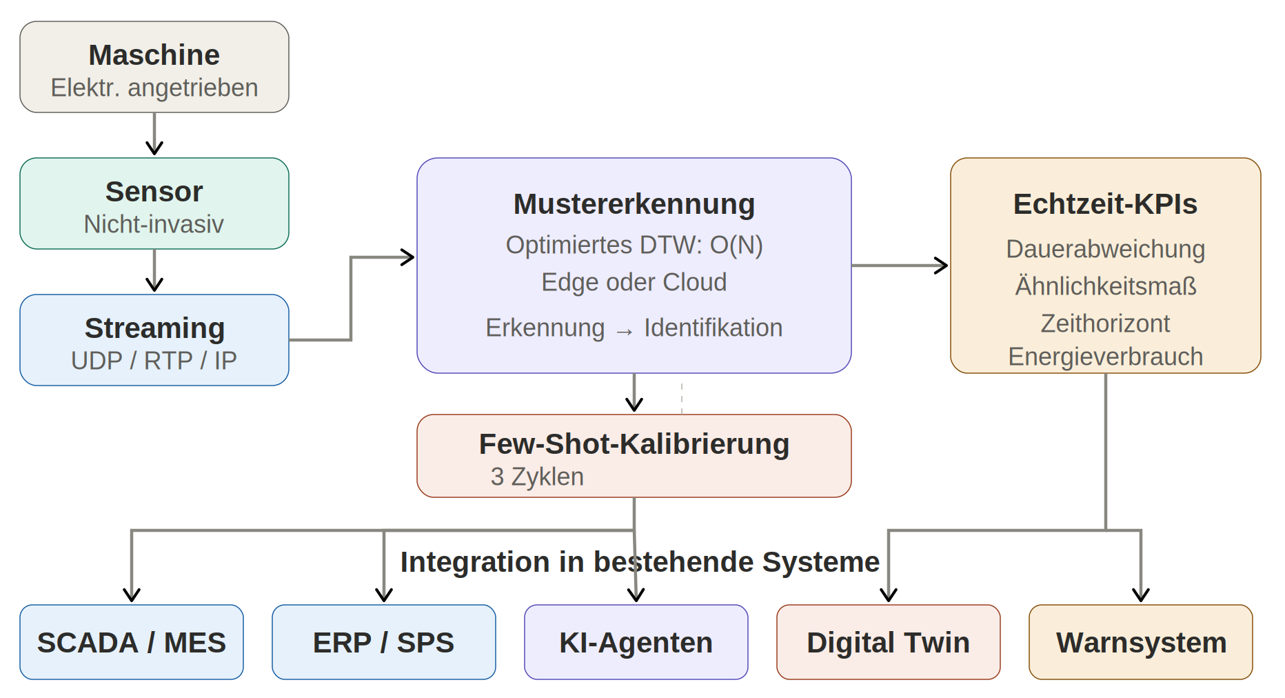 Die vorliegende Erfindung beschreibt ein computerimplementiertes Verfahren zur skalierbaren Echtzeit-Zustandserkennung von Prozessen und/oder Teilprozessen in elektrisch angetriebenen Produktionsanlagen.